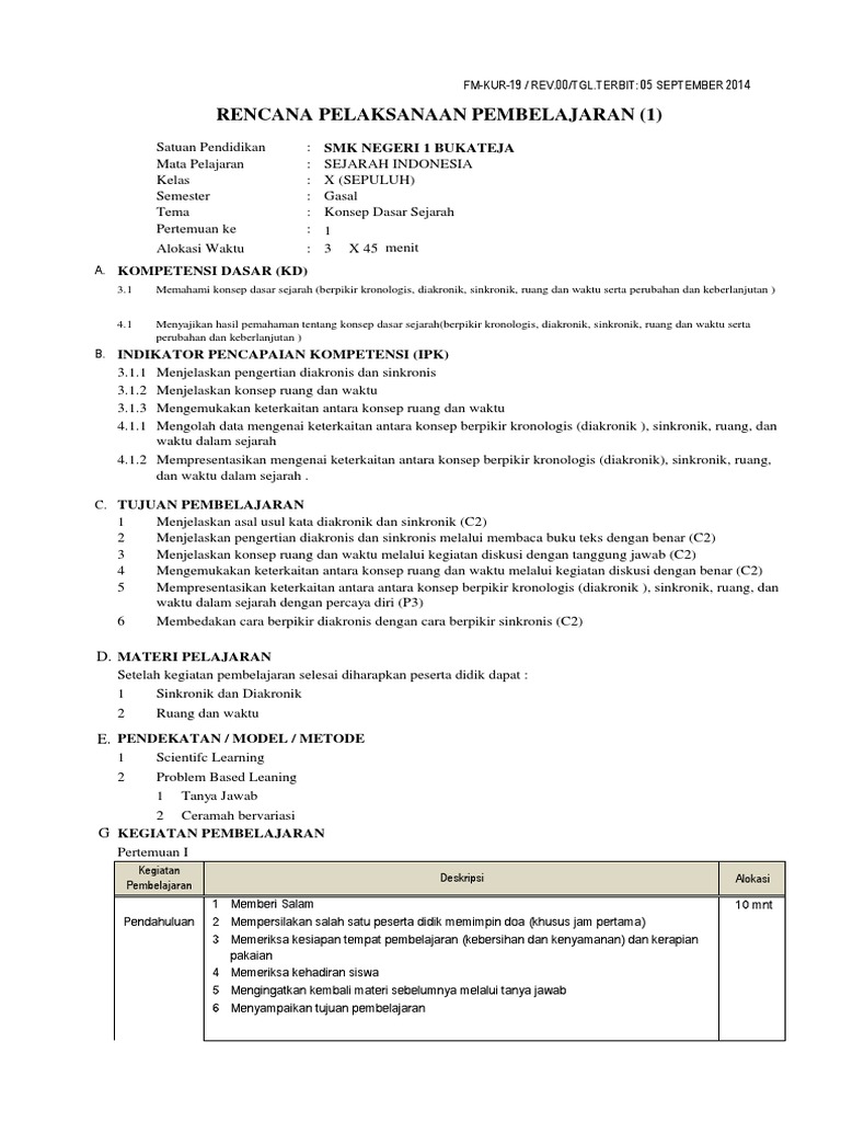 Rpp bahasa indonesia kelas x rpp indonesian class x. Kami harap contoh format file. Rpp sejarah indonesia kelas 11 kurikulum 2013 revisi 2017 menurut beberapa pakar menjelaskan pentingnya penguasaan 4c sebagai silahkan download rpp sejarah indonesia sma kelas xi k13 revisi 2017 semester 1 dan semester 2 dengan mengklik beberapa tautan yang. 3.1 menganalisis perubahan, dan keberlanjutan dalam. Kali ini cara sunda akan memposting prediksi soal ujian sejarah indonesia untuk penilaian akhir tahun (pat) atau ulangan kenaikan kelas (ukk).